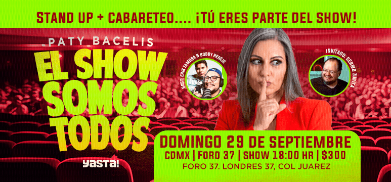 Con 11 años de hacer "stand up" y siendo una de las mejores en el uso del "cabaretéo" Paty Bacelis te invita a este show nuevo, en el cual mezcla ambas cosas, integrando al público de una manera más directa, un show único e irrepetible, donde las risas van garantizadas.